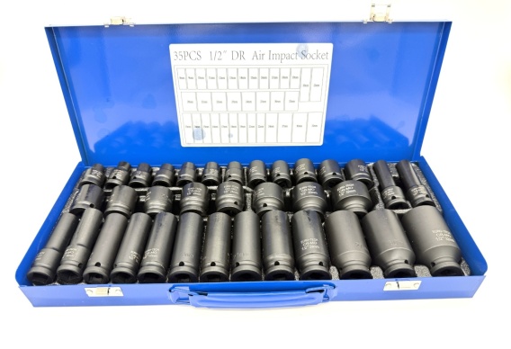 Zestaw nasadek udarowych o szerokim zakresie rozmiarów 8–32 mm. Komplet 35 sztuk przeznaczony do pracy z kluczami udarowymi oraz narzędziami ręcznymi, do zastosowań warsztatowych i technicznych.